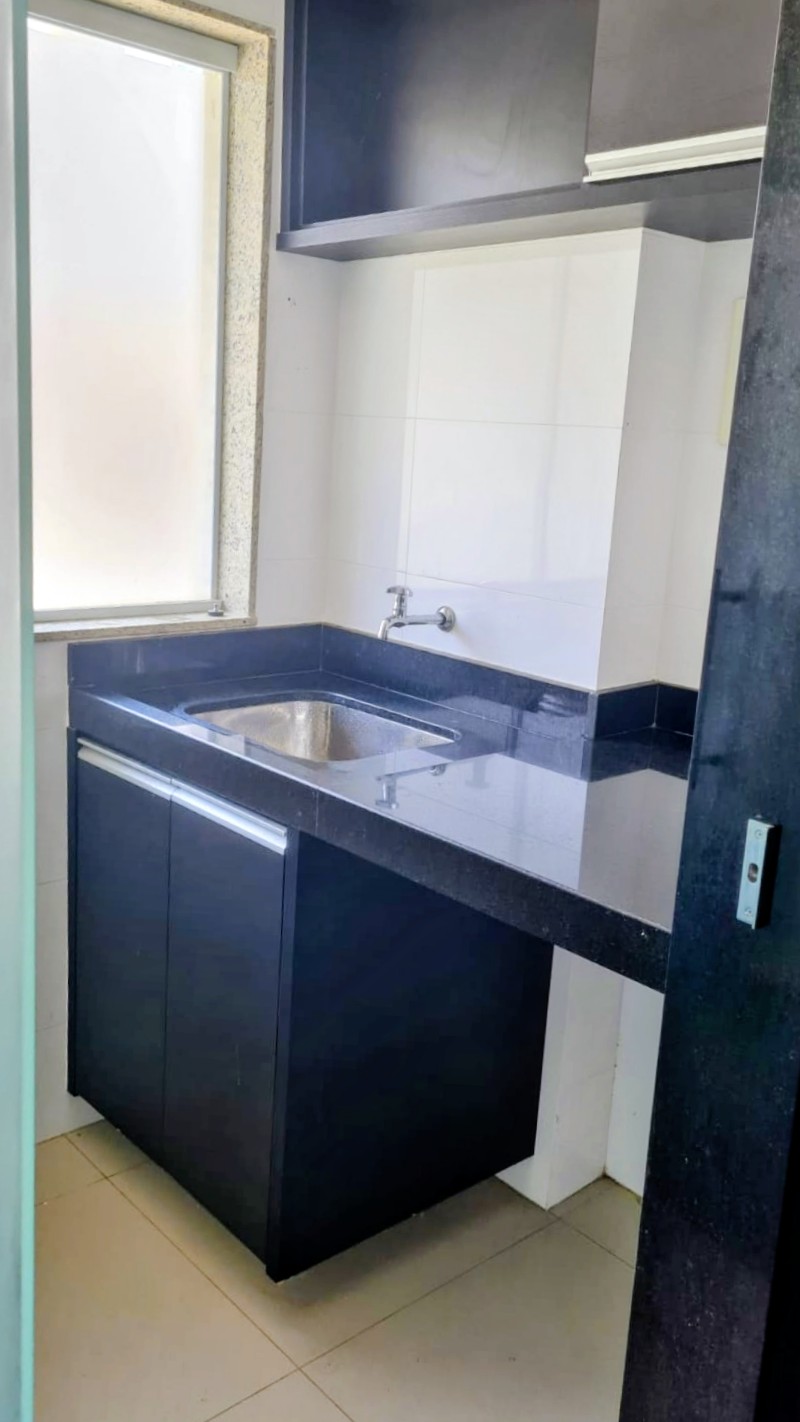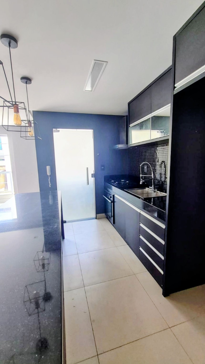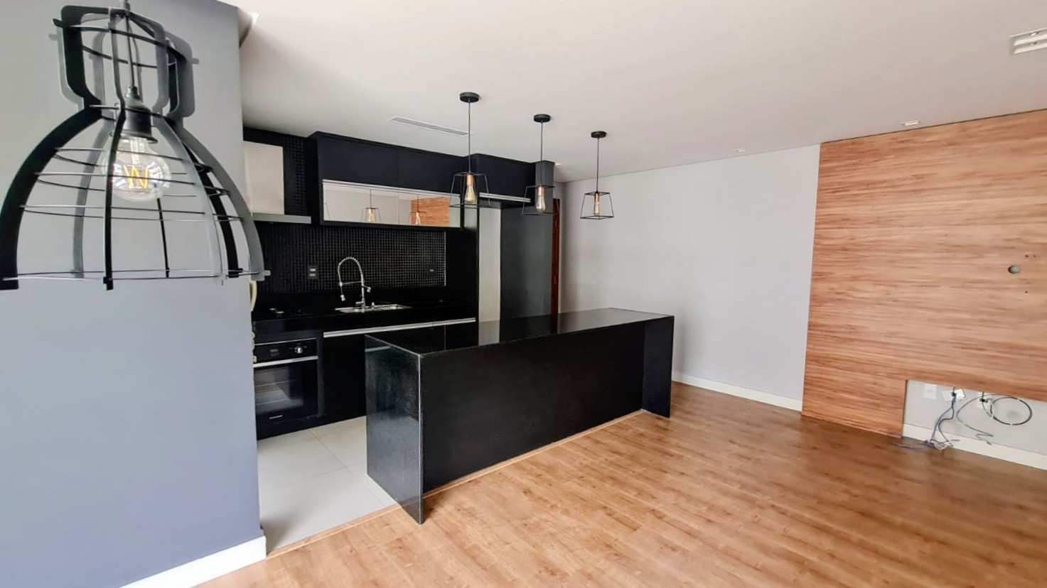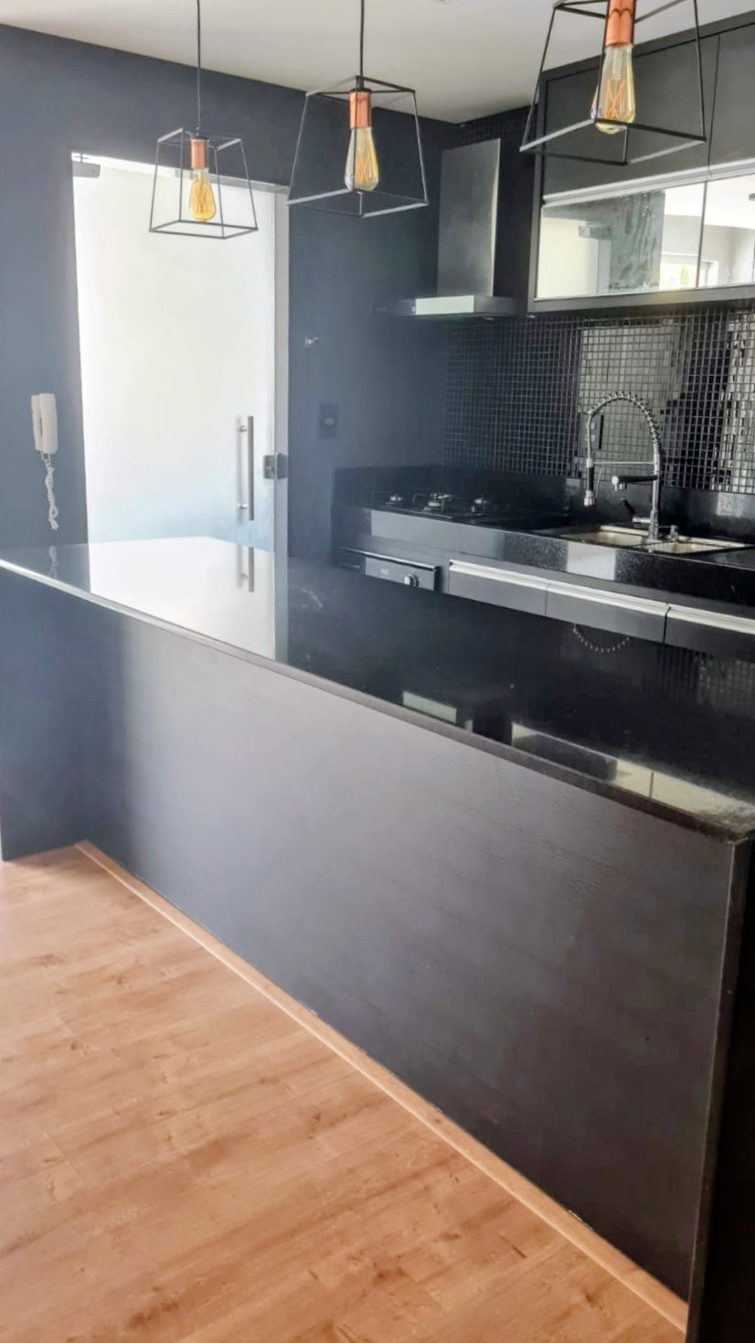 • Sala ampla com sacada, conjugada com Cozinha Americana com Balcão em Granito;