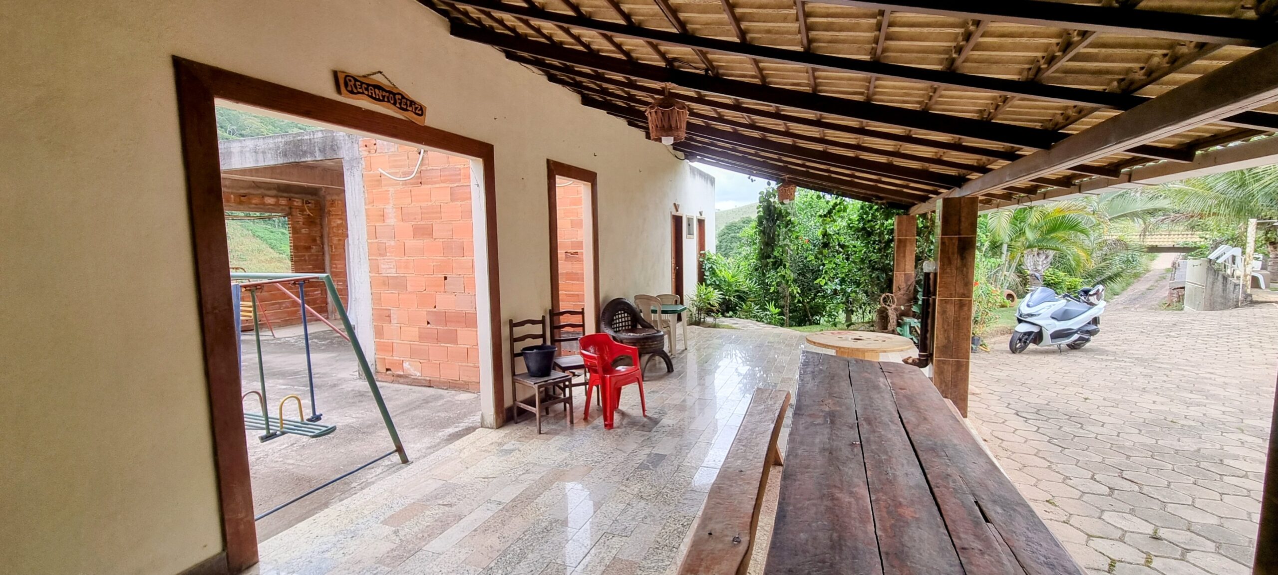 Ótima chácara a cerca de 1,5 KM de Reduto, sentido Manhumirim, a 300 metros da MG 111 na entrada para a usina. São quase 2 mil metros de área, com bela jardinagem, pomar, Piscina, quiosque, área de estacionamento, dois amplos varandões com 1 banheiro, dois lavabos, cozinha, dois quartos de alojamento com 2 treliches em cada. A casa cede com 4 quartos está em construção, na alvenaria.
